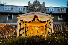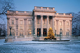 | Visit the Marble House Mansion, a summer cottage of the Vanderbilt family, completed in 1892. See this icon of the American Gilded Age filled with hundreds of poinsettias, evergreens and wreaths. Decorated Christmas trees reflect the magnificent décor and dining tables with period silver and china complete the elegant setting. |